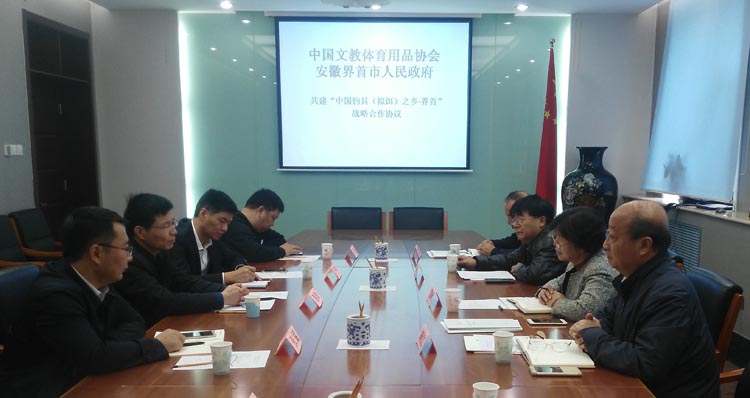 2017年10月17日上午,安徽省界首市政府領(lǐng)導(dǎo)到訪中國(guó)文教體育用品協(xié)會(huì),與協(xié)會(huì)領(lǐng)導(dǎo)就共建特色經(jīng)濟(jì)區(qū)域進(jìn)行了友好會(huì)談,雙方簽署了戰(zhàn)略合作協(xié)議。界首政府出席會(huì)議的有市委常委、副市長(zhǎng)滕敏、高新區(qū)管委會(huì)常務(wù)副主任于偉、東城區(qū)開發(fā)區(qū)主任張猛等五位領(lǐng)導(dǎo),中國(guó)文教體育用品協(xié)會(huì)理事長(zhǎng)易曉俐、副理事長(zhǎng)胡紅江、副理事長(zhǎng)兼秘書長(zhǎng)郝鋼以及釣具專委會(huì)秘書長(zhǎng)等參加接待和會(huì)談,雙方介紹了情況,并就共建特色經(jīng)濟(jì)區(qū)域,促進(jìn)地方經(jīng)濟(jì)發(fā)展進(jìn)行了友好會(huì)談,達(dá)成了戰(zhàn)略合作意向。經(jīng)過今年來對(duì)界首釣具產(chǎn)業(yè)的考察論證、專家評(píng)審,大家一致認(rèn)為,界首作為“中國(guó)釣具(擬餌)之鄉(xiāng)”的各方面條件已經(jīng)成熟,有必要雙方共同努力,推進(jìn)特色經(jīng)濟(jì)區(qū)域建設(shè)。經(jīng)過充分討論,雙方達(dá)成了“共建中國(guó)釣具(擬餌)之鄉(xiāng)·界首戰(zhàn)略合作協(xié)議”。會(huì)上,由協(xié)會(huì)胡紅江副理事長(zhǎng)和滕敏副市長(zhǎng)代表雙方簽訂了戰(zhàn)略合作協(xié)議。雙方同意發(fā)揮各自優(yōu)勢(shì),共建特色經(jīng)濟(jì)區(qū)域,促進(jìn)界首大健康產(chǎn)業(yè)健康快速發(fā)展。會(huì)議在和諧友好的氣氛中圓滿結(jié)束。(協(xié)會(huì) 張京原)